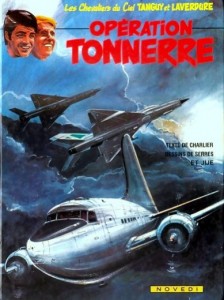 Couverture de l’album Opération Tonnerre. Avec les trois signatures : Charlier, Jijé et Serres. (Ed. Novedi)