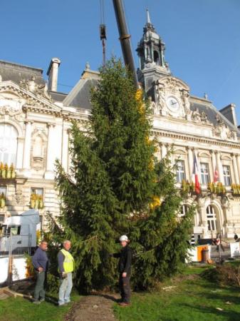 Moins majestueux que celui de l’an dernier (12 m de haut contre 17 m, 1 tonne contre 2,5 tonnes) mais bien proportionné, cet arbre a l’avantage d’être gratuit (l’autre aurait été facturé 5.900 euros) et éco-citoyen puisque local, donc pas ou peu d’empreinte carbone.