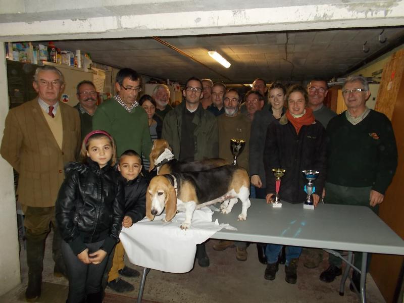 Cette année la rencontre sur le territoire mis à disposition par l’amicale des propriétaires chasseurs de St-Marcel, a permis de faire concourir samedi 28 bassets soit 7 équipages de 4 chiens et 20 bassets dimanche (5 équipages).
