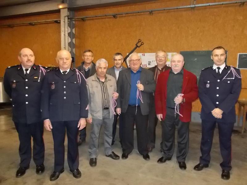 Juste après la remise de fourragères aux quatre sapeurs pompiers retraités.