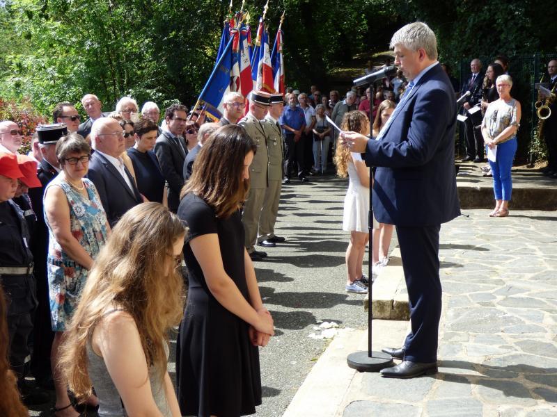 Ce massacre reste à jamais gravé dans l’histoire locale, si l’on en croit Colette Fernique, adjointe, qui a prononcé un discours de circonstance remarquable en présence des porte-drapeaux, présidents et membres des associations patriotiques, d’élus locaux et de communes voisines, de la gendarmerie nationale, des sapeurs-pompiers et d’une très large assistance, sans oublier Jocelyne Giraud, conseillère départementale et cinq jeunes filles de la cité scolaire Rollinat, qui se sont chargées de l’appel aux morts. Notons que la proviseure, Mme Papuchon et Mme Enon, proviseure-adjointe, accompagnaient ces jeunes filles.