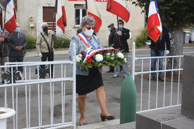 L’hommage à Claude Laubier, a débuté par le dépôt d’une gerbe offerte par la municipalité au pied du monument aux morts de Parnac par Christine Dejoie.