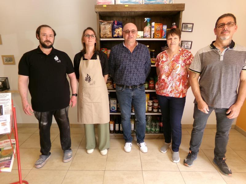 De gauche à droite : Marc Lorilloux, Magalie Huguet, Jean-Christophe Plantureux, le maire, Karine et Laurent, les anciens boulangers
