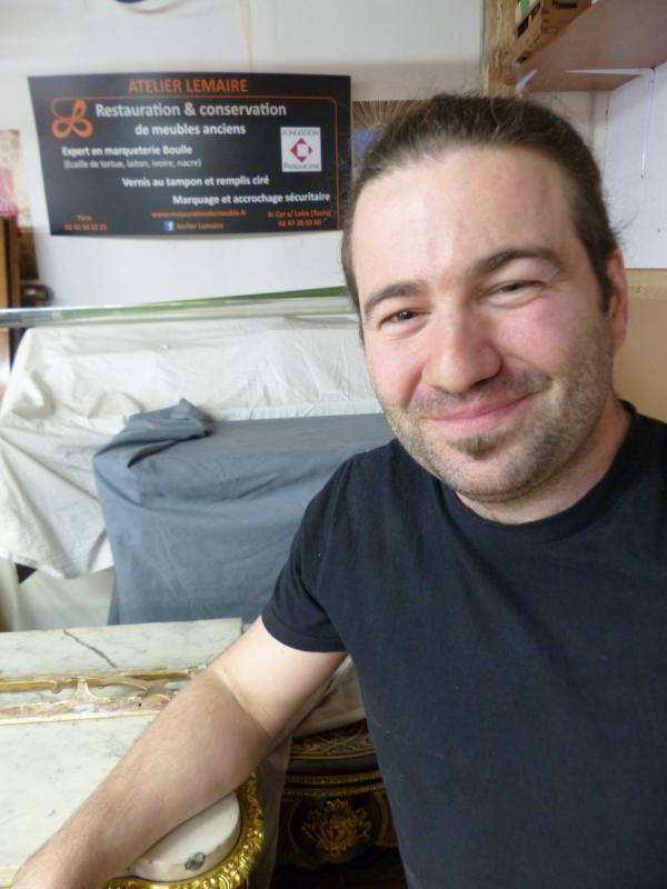 « Cela s’est fait presque naturellement car M. Lemaire me parlait de cession depuis dix ans. Alors salarié, je lui ai dit que cela pouvait m’intéresser. Et depuis, il n’a pas cessé de me former… ». Titulaire d’un CAP Bac Pro Ébéniste, CAP Marqueteur, CAP Tourneur d’art sur bois, avec une formation de restauration de meubles, d’un BTMS de restauration de meubles en partenariat avec les Monuments historiques, Julien Hébras a contracté un prêt sur sept ans par le Crédit Agricole et a été soutenu par la Fondation du patrimoine. Les réseaux Ateliers d’art de France et Vieilles maisons françaises viennent de lui décerner le Prix du Savoir faire unique. Excellent début…