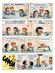 Et puis Gastoon se différencie de son oncle en étant moins gaffeur et plus malin mais toujours aussi écolo. L’univers développé par le trio de « repreneurs » est en partie nouveau même s’il reste inspiré de Gaston à l’image des personnages enfants (Jeanne, Jules ou Demesmaeker) du style vestimentaire de Gastoon (ah ce célèbre pull vert et ces espadrilles, quel gamin porterait encore cela aujourd’hui?). Evidemment pas question de bureaux de Spirou à cet âge là, mais plutôt de cour d’école, tandis que le pion Lemat n’a rien à envier au flic retors Longtarin…