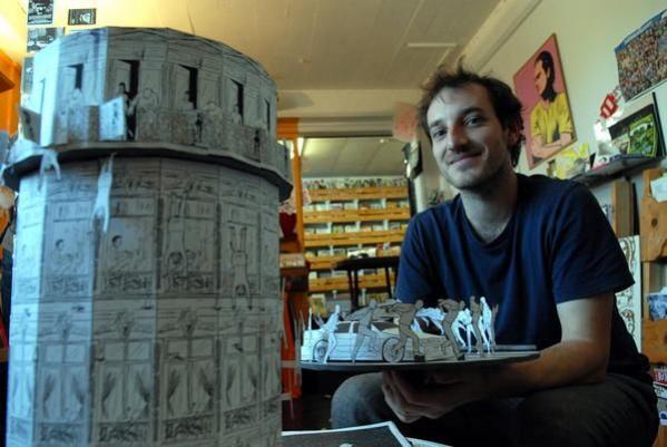 Issus du fanzinat, les deux auteurs de bande dessinée Florent Ruppert et Jérôme Mulot sont aujourd’hui reconnus d’une profession dont ils contribuent à renouveler les codes. A la lumière de leur formation plasticienne (Beaux-Arts de Dijon), ils offrent un sacré relief à leur pratique graphique avec ce singulier « petit théâtre » qui n’hésite pas à bousculer leurs personnages de papier. Les spectateurs risquent même de ne pas être épargnés par une vague sensation de vertige.