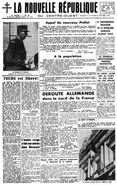 L’histoire de la BD dans la NR n’a pas commencé le 1er septembre 1944. Pourtant, c’est en effet ce jour-là que sort de l’imprimerie de la rue de la Préfecture à Tours, le premier exemplaire (officiel) de la Nouvelle République.