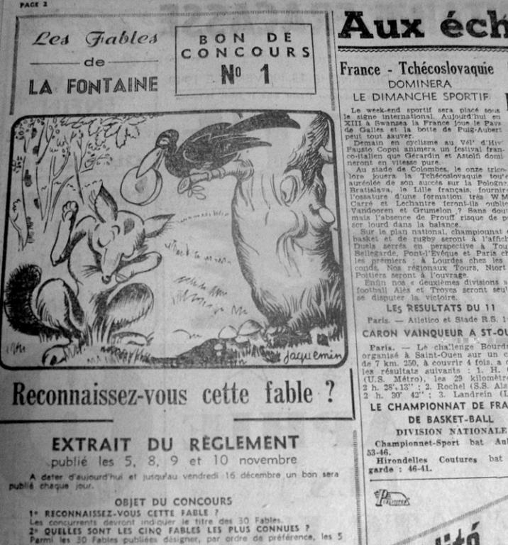En pied de page de la NR du week-end du 12-13 novembre 1949, Monsieur Top, version maison, participe au concours des fables.