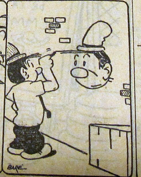 Même punition, même motif pour le dessinateur. Fouillez dans vos moteurs de recherche… il n’y rien sur ce Baré qui signe toujours en bas de la troisième case. Qui est-il ? Par qui fut-il diffusé ? A-t-il travaillé ailleurs ? Mystère. Est-ce effectivement son nom ou bien (ce qui paraît probable) un pseudonyme ?
