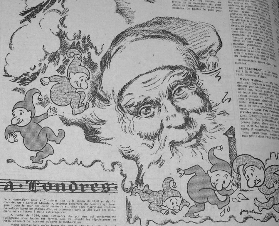 Le conte de Noël en forme de sapin date de 1948. Il est signé Jaboune, c’est à dire Jean Nohain, star radiophonique de l’époque et éditeur du supplément illustré « le petit Canard » que la NRCO publie (voir acte 5).
