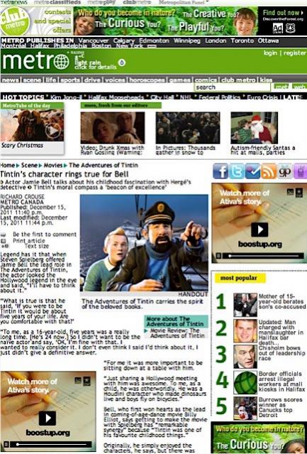 Steven Spielberg a d’ailleurs déclaré lors de plusieurs interviews espérer que son film permette à Tintin de se trouver un nouveau lectorat dans son pays. Et a en voir les différentes unes des journaux Canadiens et Américains, qui ont parfaitement relayé la sortie du film, cela semble en tout cas bien parti…