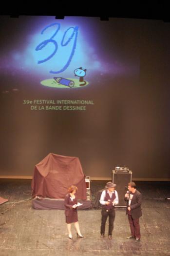 Puis Art Spiegelman déclare officiellement ouvert le 39e festival de Bande dessinée ! Et s’allume une cigarette sur scène pour fêter ça.