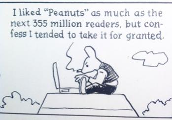 18h30. On ressort sous le choc de l’exposition Art Spiegelman, au bâtiment Castro. Avec Le Musée d’Art Spiegelman qu’accueille la cité de la bande dessinée de l’autre côté de la Charente, l’empreinte du Grand Prix est aussi conséquente que passionnante. Incontournable. Il y a bien sûr Maus, mais aussi beaucoup d’autres choses plus légères comme ce clin d’oeil aux Peanuts.