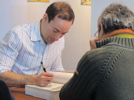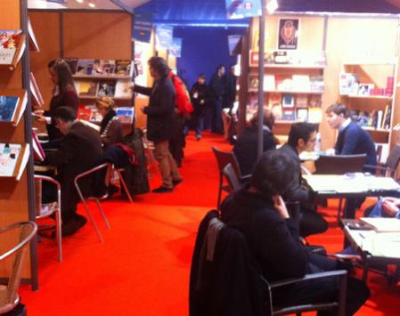 11h30. Sous les bulles, il y a du monde, beaucoup même comparé aux années précédentes où le vendredi n’est pourtant pas la plus grosse journée. Craig Thompson est une véritable vedette. La file d’attente pour lui faire dédicacer son Habibi est énorme et il faut s’armer d’une énorme patience pour obtenir un précieux dessin du sympathique et talentueux Américain.