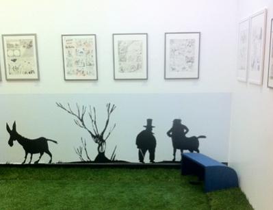 10h15. L’exposition Fred est merveilleuse. On retrouve toute la magie onirique des albums de ce conteur éclectique. C’est beau, splendide, envoutant. A l’entrée de l’Hôtel Saint-Simon, un puit accueille les visiteurs. Comme Philémon, il nous entraîne pour une visite inoubliable. Et au deuxième étage, l’herbe est verte et sent bon le gazon. Le scénographe a eu la bonne et surprenante initiative d’installer de la vraie pelouse. Bien vu, on s’y croit. Tiens, Alfred est également de la visite. L’auteur se produisant chaque jour lors des concerts de dessin confie d’ailleurs être un grand fan de Fred. Comme beaucoup d’artistes…