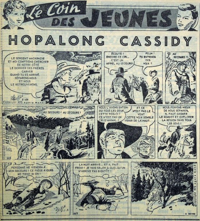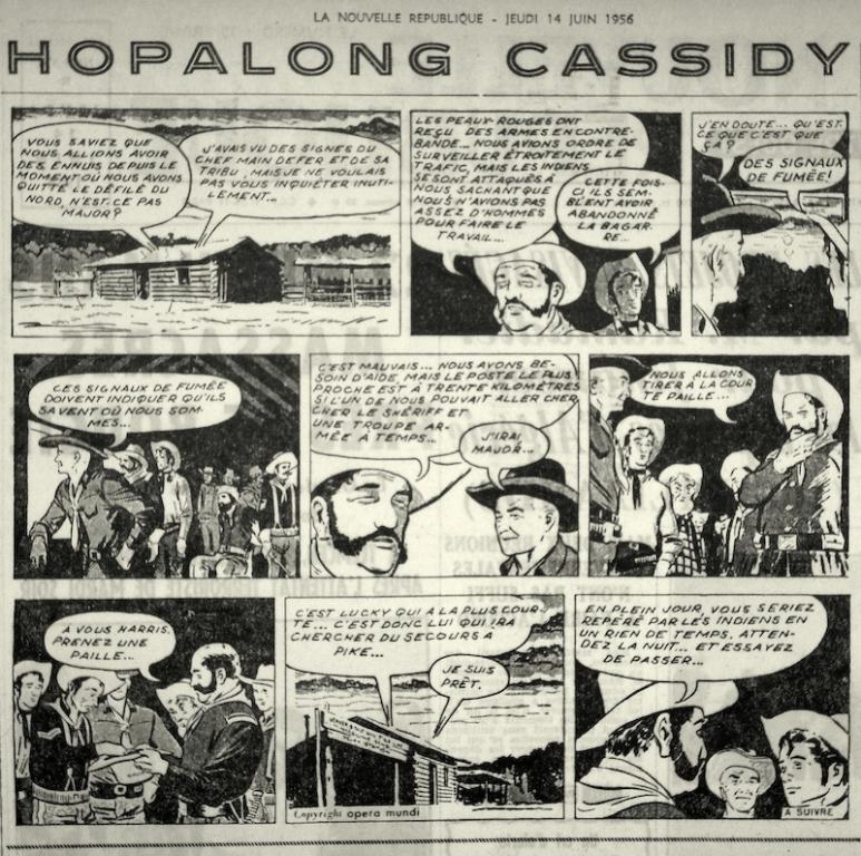Curieux de reparler d’histoire illustrée alors que Hopalong Cassidy va être la première véritable BD avec bulles de l’histoire dans la NRCO.