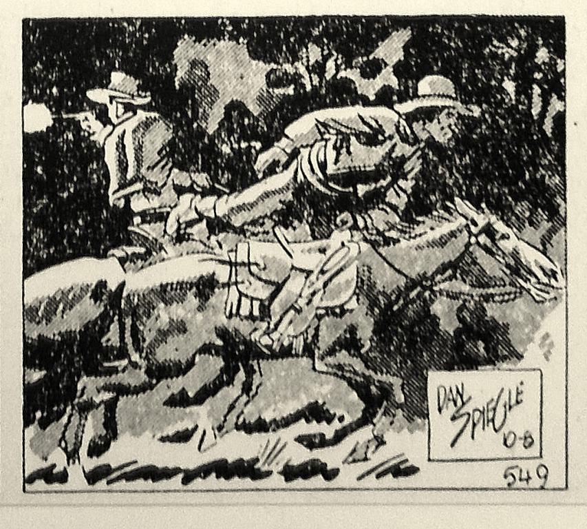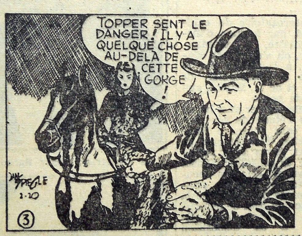 Signée Dan Spiegle, avec le double copyright KFS/Opera Mundi, la case portant le n°1 du premier épisode publié en France. Elle date probablement de 1951, en fait.