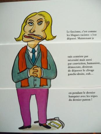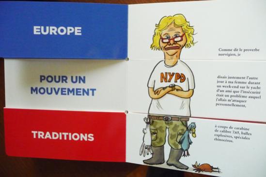 Avec cet album, vous pouvez donc composer à votre guise l’aspect et le discours de votre président idéal. La tête de Bayrou, le corps de Sarkozy, les pieds d’Eva Joly. ici , tout devient possible! Voter « Front Nature et Anticapitaliste », « lutte solidaire »? C’est permis, en recomposant les corps des candidats ainsi que leurs discours de campagne. C’est ainsi que l’on commencera avec le célèbre « Travailleurs, travailleuses, je » (Nathalie Arthaud) suis centriste par nécessité mais aussi par conviction, humaniste, démocrate, désireux de dépasser le clivage gauche-droite, euh… (François Bayrou) sauf si Daniel Cohn-Bendit continue à se moquer de moi sur Canal + ( Eva Joly)