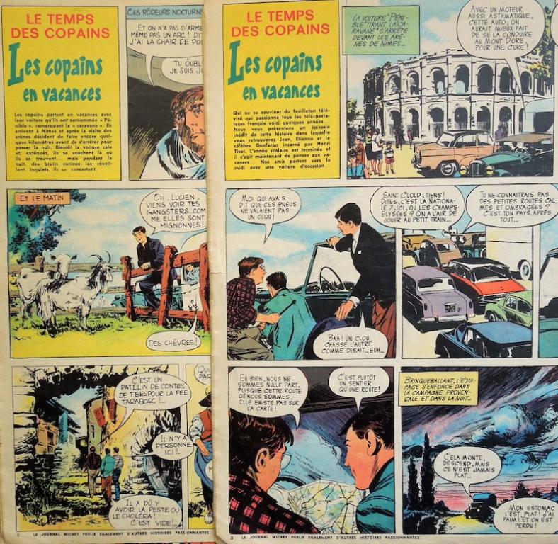 Comment ce supplément s’est-il retrouvé sur le marché régional ? Bonne question. On peut penser que c’est Opera Mundi qui a servi de passerelle entre la maison Dargaud et la PQR ; mais, fait étonnant, on trouve dans les pages centrales une histoire tirée du Journal de Mickey (donc Hachette, également diffuseur de presse, concurrent d’Opera Mundi !), celle de la traduction dessinée du feuilleton télé, « Le temps des copains » avec un Henri Tisot qui n’imitait pas encore le général de Gaulle.