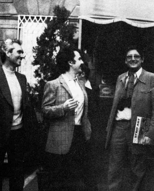 Francis Groux (à gauche) au festival de Lucca 1973 avec Hermann et André Franquin. (Photo Numa Sadoul)
