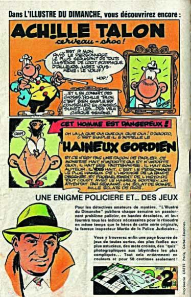 Les seules nouveautés sont constituées par « Haineux Gordien » de Greg, et « Les enquêtes du commissaire Marin » (dessin Antonio Parras, scénario André-Paul Duchâteau), qui sous le nom de commissaire Jeudy, reprendra ses enquêtes fin 1967, au numéro 425 de Pilote. Egalement présente, la sirène Arabelle de Jean Ache, apparue dans France-Soir en 1950.
