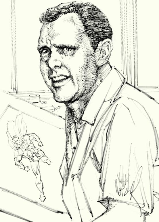 Portait de l’artiste dessiné par Michael Netzer pour Wikimédia. Boring, à partir de 1968, va travailler avec Hal Foster pour Prince Valiant (que la NR publiera aussi, mais si !)