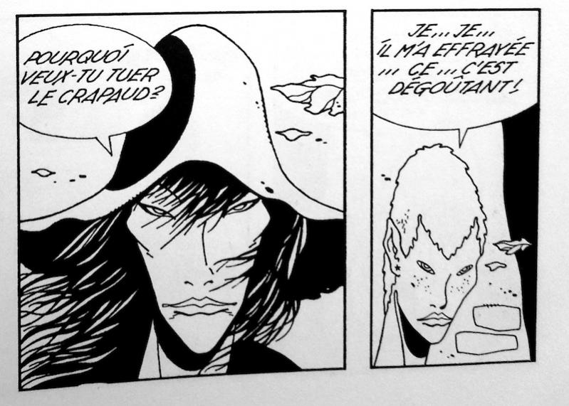 Et Didier Comès, de son air doux, gentil de décrire ce terrible maléfice dont il a été chercher la trace dans les légendes du Berry, chez ces redoutables « j’teux d’sorts » (jeteurs de sorts) : un cheveu d’un ennemi introduit dans un œuf de poule va pourrir en trois jours, pourrissant par là-même les viscères de l’être détesté.