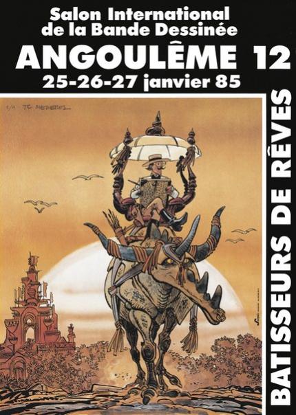 Et puis il y aussi cette rencontre de présidents, entre Mitterand et Mézières, Grand Prix 1984 et donc président du salon 1985. Son univers fait l’objet d’une exposition à la scénographie spectaculaire où l’on pouvait même entrer dans l’astronef de Valérian, mesurant 14 m sur 4 m ! Les personnages de Mézières règnent en maître à Angoulême. Grace à un partenariat entre Dargaud et l’afficheur Dauphin, une toile de 8 m sur 3 m est installée au carrefour de l’Isle.