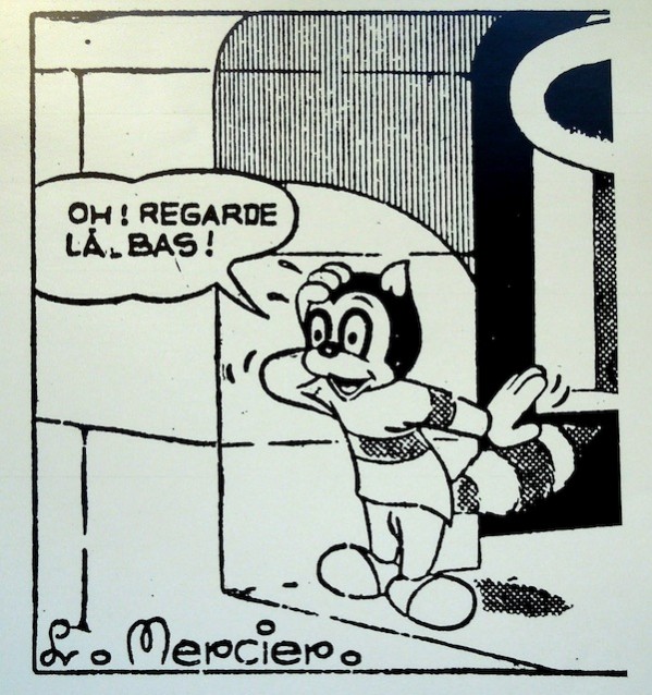 Pendant un an et demi, d’octobre 1956 à janvier 1958 dans France Soir, le Maine Libre et Hurrah, l’Angevin va imaginer des histoires en pleine liberté et faire vivre son chat dans un décor très proche de celui de Mambo. Mais, détail, sans jamais que sa signature n’apparaisse, ni d’ailleurs, celle d’Otto Messmer (ou Joe Oriolo qui va le seconder) mais uniquement la mention « créé par Pat Sullivan ». Submergé de travail, dans l’impossibilité de réclamer des droits d’auteur, Léon Mercier va alors quitter l’agence Winkler pour Cino del Duca. Sa griffe sur Félix le chat est aujourd’hui soit sommairement relatée dans quelques ouvrages spécialisés (c’est la seule mention de l’existence de Léon Mercier, cette liaison de quelques mois avec une star made in USA) soit contestée dans des termes pas très sympas… mais depuis le petit matou est retombé sur ses pattes et a vécu au moins neuf nouvelles vies après ce surprenant passage entre Anjou et Touraine…