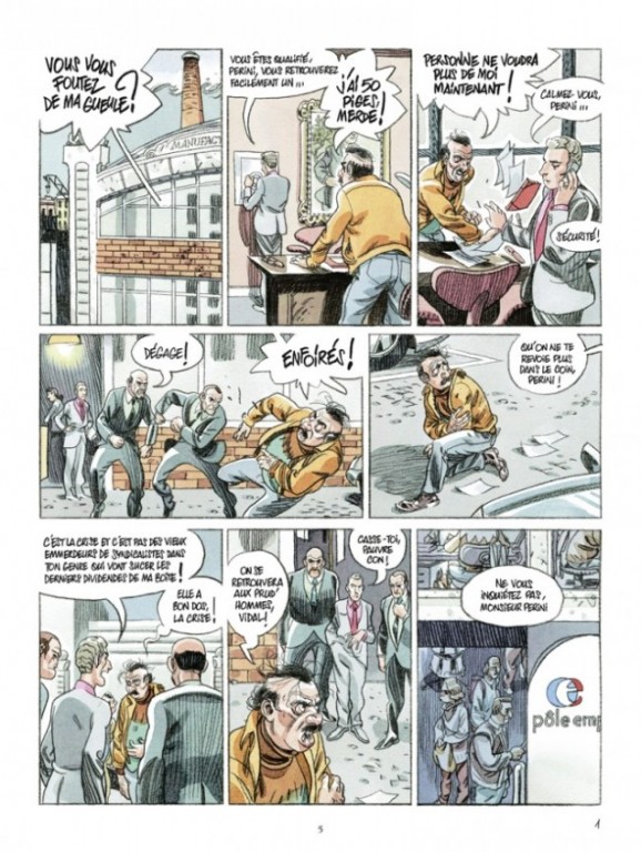 Ajoutons pour conclure que cette BD, sortie quelque jours avant l’arrivée de la gauche au pouvoir trouve aujourd’hui une nouvelle résonance. A l’heure où les plans sociaux s’amplifient, où la courbe du chômage ne cesse de grimper, cette BD tente à sa façon de décrire le monde du travail. On pourra lui reprocher un certain manichéisme, quelques clichés et un propos militant trop visible par endroits mais au bout du compte on se laisse porter par les aventures de ce Robin des Bois des temps modernes. Un tome 2 est attendu…