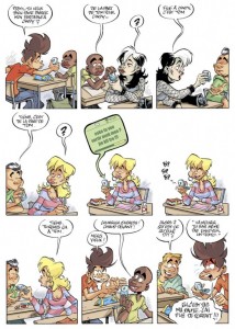 C’est ce drôle d’individu que croquent Jim et Rudowski dans Mais tous les ados sont comme ça?!, un album de 96 pages découpé en quatre grandes thématiques (l’adolescent et les copains, l’adolescent et les filles, l’adolescent et la famille, l’adolescent et l’école)