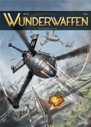 Les damnés du Reich est le troisième tome de la série Wunderwaffen, scénarisée par Richard D. Nolane et dessinée par Maza. Cette série est une uchronie de la Seconde Guerre Mondiale ; les deux auteurs imaginent que les Alliés ont échoué lors du Débarquement et que les Nazis ont réussi à fabriquer des avions révolutionnaires.