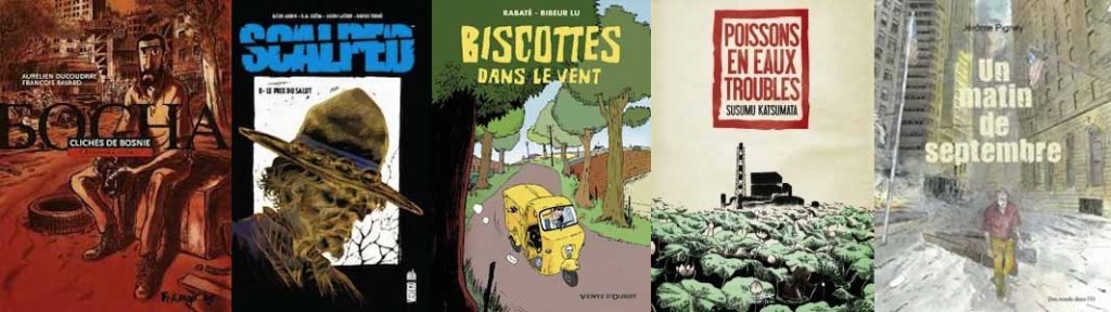 Pour cette troisième semaine d’août, Case Départ vous propose sa sélection d’albums de la semaine. Parmi ces dernières nouveautés, il y a pour vous quelques petites merveilles : un album-reportage sur les conséquence de la guerre de Bosnie, Clichés de Bosnie; le huitième tome de la saga de Jason Aaron Scalped; Biscottes dans le vent, la vie quotidienne d’un jeune postier; un recueil d’histoires Poissons en eaux troubles par le mangaka Susumu Katsumata et Un matin de septembre, un album sur les séquelles des attentats du World Trade Center. Bonnes lectures !