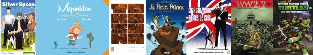 Pour cette quatrième semaine du mois d’août, Case Départ vous propose sa sélection d’albums de la semaine. Parmi ces dernières nouveautés, il y a pour vous quelques petites merveilles : Silver Spoon, un manga sur la vie d’un lycée agricole; Myrmidon au pays des cow-boys, un album muet pour les tout-petits; le deuxième tome de la série Yokozuna qui a pour cadre les confréries de sumos; une aventure dessinée du Petit Prince, La planète de Géhom; Chapeau melon & bottes de cuir, une adaptation de la série télévisée; le sixième tome de la série d’uchronie WW2.2 et un album des célèbres héros télé, Les Tortues Ninja. Bonnes lectures !