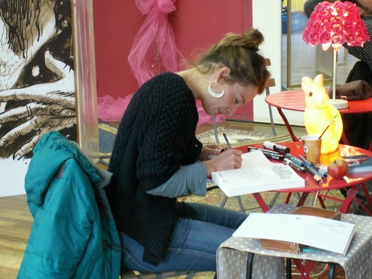 Une deuxième salle avec pour nom : Les mythes et une vie, où le public pouvait discuter avec Julie Maroh, auteure de Le Bleu est une couleur chaude dont Case départ vous a parlé, Cécil ou encore Amruta Patil. Ils étaient installés autour d’une immense table blanche, avec une beau voilage et des objets insolites peints en blanc.