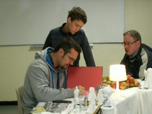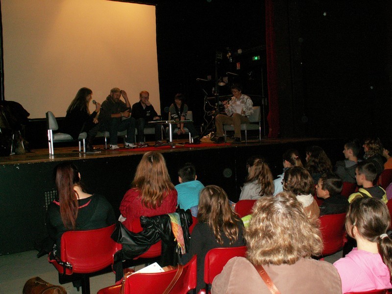 A 11 heures, Marie Deschamps, Baba et Lepithec pouvaient échanger avec le public dans la salle de spectacle. Un jeu de questions-réponses avec les jeunes spectateurs se mettait en place, animé par Claire Simon, du Pôle Pédagogique du Rectorat. Les 3 auteurs jeunesse devaient aussi désigner la meilleure chronique de leur album rédigée par des classes de collège de la Vienne.