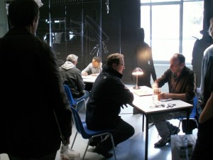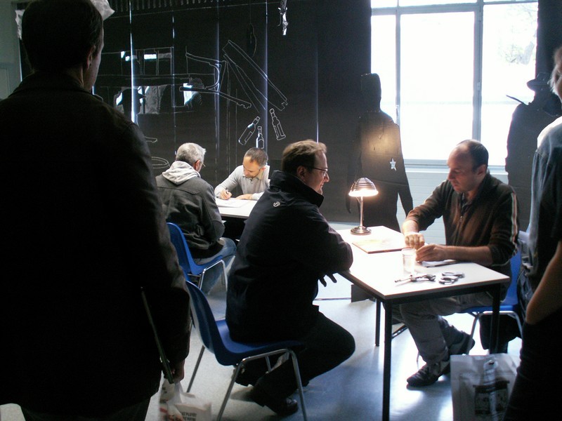 Une première salle intitulée : Western graffiti, la tuerie graphique, avec Damour (Pinkerton) et Nicolas Dumontheuil (La colonne). Plongés dans le noir, les 2 auteurs pouvaient discuter de leurs travaux sur le western avec les visiteurs.