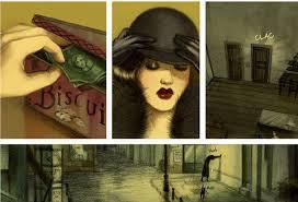 « Violette, c’est l’histoire d’une jeune fille qui veut tout simplement de l’argent pour consommer! » explique Eddy Simon. Mais ce bel album, ce portrait hors normes magnifiquement dessiné par Camille Benyamina ( son trait léger et ses jeux de couleurs sont captivants) c’est aussi l’histoire d’une société des années trente encore insouciante qui ne voit rien des dangers qui la menacent. A lire absolument!