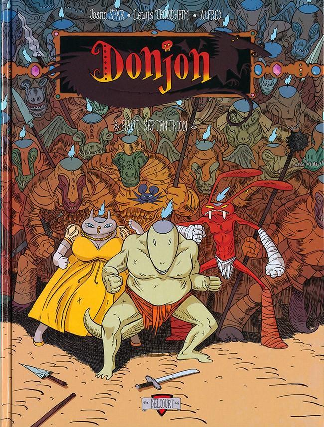 Pour achever en beauté l’excellente saga d’aventures et d’héroïc-fantasy décalée Donjon, Joann Sfar et Lewis Trondheim proposent deux ultimes albums de la série, à lire en parallèle : le tome 110 de Donjon Crépuscule, intitulé Haut septentrion et mis en images par Alfred et le tome 111 La fin du Donjon, mis en images par Mazan.