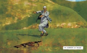 Pascale Bourgaux, grand reporter à la RTBF, a suivi le parcours du seigneur de guerre afghan Mamour Hasan, entre 2001 et 2011. Pendant ses dix années, la journaliste a partagé le quotidien du chef et de sa famille dans une région en lutte contre les talibans. Les larmes du seigneur afghan raconte cette plongée au cœur du conflit armé, un témoignage fort mis en image par Thomas Campi et scénarisé par la reporter, elle-même assistée de Vincent Zabus. Bruxelles, 2010. Pascale Bourgaux est sur la route la menant à l’aéroport. A ses côtés, son mari et son jeune fils. La femme part de nouveau en reportage au Nord de l’Afghanistan pour y rencontrer Mamour Hasan, un chef de guerre qu’elle côtoie depuis 10 ans. Laissant ses proches en Belgique, elle embarque avec Gary, son assistant cameraman, dont c’est le premier voyage dans le pays. Depuis les attentats du 11 septembre, les habitants Dasht-e-Qaleh résistent aux talibans, installés au Sud. A la tête de cette région, Mamour, seigneur de guerre Ouzbek, reçoit de l’aide des américains et de ses alliés. Arrivés à Kaboul, ils rejoignent Tawab, leur fixeur (guide-interprète) qui doit les conduire jusqu’à leur hôtel sécurisé où logent d’autres journalistes. En effet, c’est dans la capitale qu’ils doivent rencontrer Hasan, venu fêter le nouveau gouverneur de Takhar, sa province. Après quelques brefs mots échangés, ils se quittent en se donnant rendez-vous dans la cité de Mamour. La route est longue jusqu’à Dasht-e-Qaleh ; tout d’abord un avion peu fiable jusqu’à Kunduz puis une voiture sur des routes peu sécurisées. A l’intérieur, Gary est déguisé en afghan et Pascale se cache sous une burqa. Après un contrôle des talibans, ils arrivent dans la maison familiale des Hasan. Les trois femmes du seigneur préparent le repas, à l’écart des hommes ; l’un des fils est malade mais les médicaments sont chers. Mamour n’est pas serein, il n’a plus d’argent pour ses proches. Il ne vit plus uniquement que de ses terres. La zone n’est plus sûre, les soldats alliés ne s’y aventurant plus. Les talibans avancent, la région se radicalise. Seule son autorité permet de les tenir à l’écart… Véritable témoignage saisissant, Les larmes du seigneur afghan est un très bel album-reportage. S’appuyant sur l’un des nombreux voyages de Pascale Bougaux, il met en lumière les affres de ce pays tenu responsables par les américains du 11 septembre, ainsi que les difficultés de cet homme loyal et grand résistant à l’oppresseur (de 1979 à 1989 contre les russes puis de 1994 à 2001 contre les talibans). Mamour règne en seigneur sur cette partie frontalière avec le Pakistan et l’Ouzbékistan. Sorte de figure paternelle, il dirige les habitants, les protège, les fait travailler ; en somme, les fait vivre. Garant de l’unité et de la stabilité de cette région, il est pourtant oublié dans le premier gouvernement Karzaï. Cet album suit pas-à-pas, le parcours, parfois délicat de Pascale et Gary, entre déguisements, diplomatie et sécurité pour réussir au mieux leur reportage. Le climat de confiance entre elle et Mamour se ressent bien dans le récit. Très proche de la réalité, l’histoire permet de mettre en lumière un pays lointain, méconnu des Européens. Seules, les images de guerre ou celles de talibans dynamitant les statues de Bamiyan, nous sont arrivés ; faussant ainsi notre point de vue. Si la guerre d’Irak avait été la première filmée, celle d’Afghanistan sera la première autant verrouillée par les communicants. D’ailleurs, Pascale Bourgaux note ces changements entre ce voyage et le précédent : la communication des américains et la radicalisation de nouveau visible dans le pays. Le trait semi-réaliste et vif de Thomas Campi permet de ressentir l’ambiance parfois pesante du récit. Le dessinateur italien réhausse ses planches de 6 à 8 vignettes par des couleurs magnifiques.