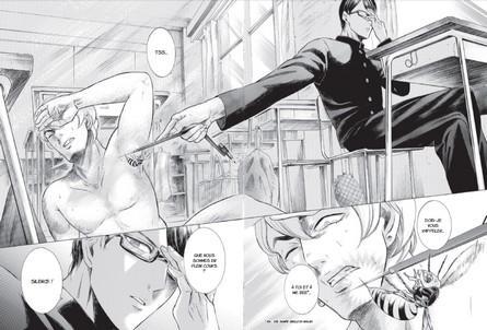 C’est l’heure de la récréation. Tout va pour le mieux : Duffy, la grosse brute épaisse et complètement idiote, terrorise ses camarades à grands coups de poings. Il y a là aussi : Oskar, élève bon chic, bible à la main, Bobby, Renée et Akiyuki, qui semblent s’aimer.