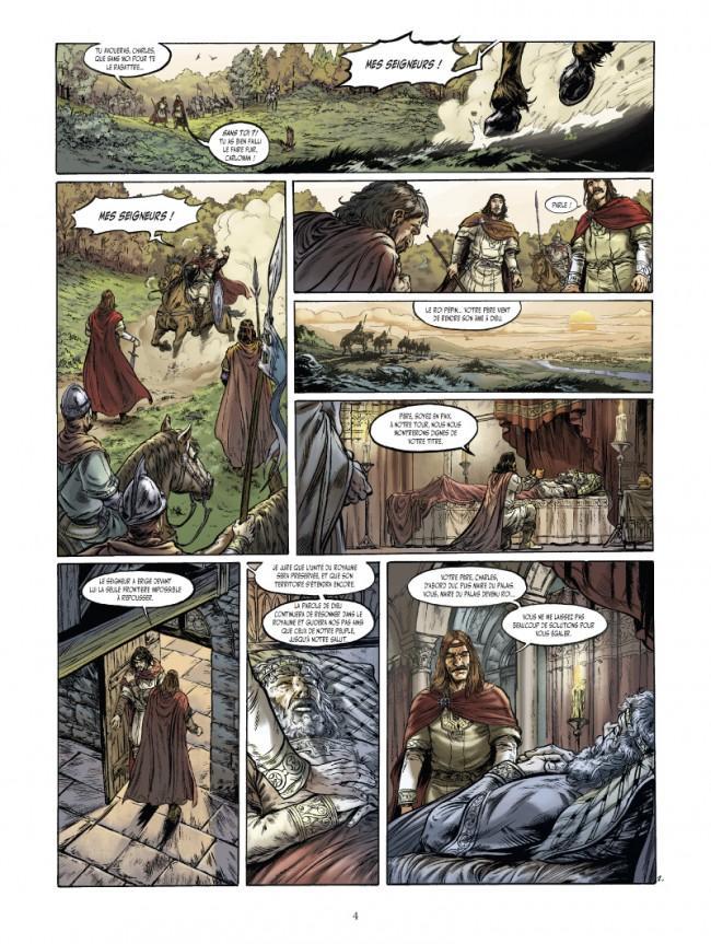 8e siècle, royaume des Francs. Carloman et Charles, en pleine partie de chasse, sont interrompus par un serviteur : le roi Pépin, leur père, vient de décéder. Arrivés à son chevet, les deux princes doivent faire face à leur destinée. L’abbée Fulrad et Bertrade, leur mère, viennent aux nouvelles. L’homme d’église leur lit le testament royal : le pays sera coupé en deux ; la première partie sera confié à Carloman et il devra établir la capitale à Soissons, la seconde partie reviendra à Charles et Noyon en sera la capitale. Furieux par la tournure que prennent les événements, Carloman claque la porte du palais.