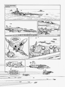 Lorsque l’on n’est pas habitué à lire ce style d’album, à savoir des bandes dessinées sur l’aéronautisme, on pense que cela sera une corvée. Mais pour Rafale leader, ce n’est pas le cas. Le récit dense de Frédéric Zumbielh est le point fort de l’album. Mélangeant subtilement les combats aériens à une intrigue reposant sur de la corruption, il réussit son pari. Ajouté à cela, des Russes assoiffés de sang, comme aux plus belles heures de la Guerre Froide et le lecteur sera vite happé. Si le duo de personnages (Léo, le pilote et Anna, la belle scientifique) fonctionne, on le doit à leur volonté de protéger la fameuse clé USB mais aussi aux capacités de combat du pilote. Entre une communauté scientifique isolée dans le Pôle Nord, ne sachant pas quoi faire ni se défendre et des amis de Léo prêts à en découdre dans le ciel ; le scénario est assez équilibré et propose de nombreux rebondissements, parfaitement distillés au fil des pages. Si l’on est conquis par un récit solide et bien pensé, on est moins emballé par la partie graphique : les personnages ne sont souvent pas bien maîtrisés, prenant souvent les mêmes poses, un brin figées, et quelques erreurs lorsqu’ils sont en mouvement, notamment en course. Néanmoins, les engins volants, flottants ou rampants, ainsi que les décors sont eux d’une belle qualité. Lorsque tous ses détails seront réglés, Rafale leader deviendra alors une excellente série.
