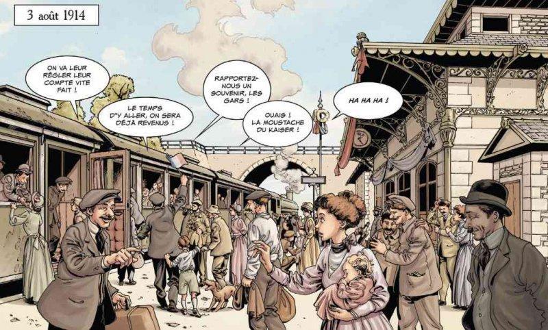 Eric Corbeyran et Etienne Le Roux ont décidé de s’associer pour raconter cette fabuleuse saga historique prévue en 10 tomes (les cinq premiers entre août 2014 et août 2016) sur quatre années. Voici le premier volume intitulé Le petit soldat (août 1914).