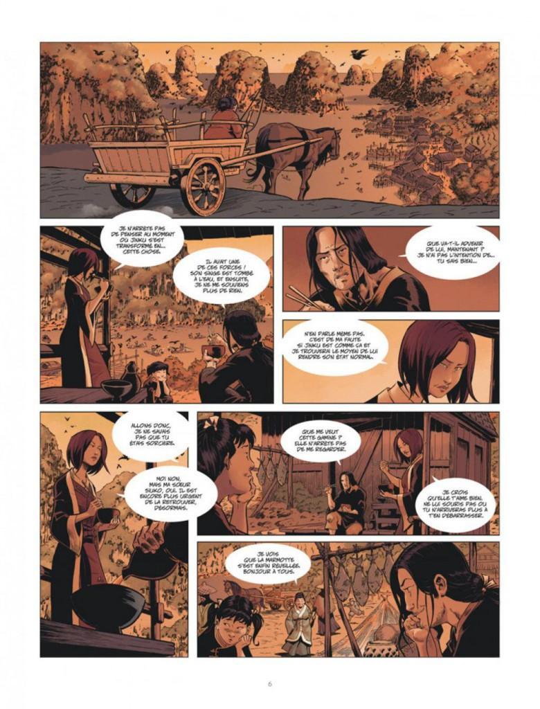 Le récit solide de Raule est toujours aussi efficace. Cette plongée dans le Japon médiéval est très réussi et les personnages toujours aussi bien cernés. La transformation de Jinku en zombie ouvre là aussi de belles perspectives. Le duo Isabellae-Masshiro fonctionne à merveille, rejoint par Qiang, mystérieux guerrier-vengeur d’une grande utilité lors des combats (il ne tue pas d’innocents) apporte son lot de surprises. Pourtant les scènes de combats et celles réalistes sont plus réussies que les scènes fantastiques avec les morts-vivants, d’ailleurs, ils sont plus en retrait dans ce dernier tome du premier cycle. La partie graphique est encore à la hauteur des deux précédents volumes. Gabor excelle dans l’art de mettre en scène les combats et apporte beaucoup de soin dans les coutumes japonaises (décors, habitations, vêtements…).