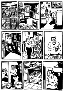 Le jardin de Mimi est la suite de L’aventure de l’homme-chien. Le lecteur retrouve donc Kim, Tomy à la campagne chez Mimi. Les mini-récits grand public de Yoon-Sun Park mettent en scène des aventures campagnardes à l’ambiance très bio-écolo. Comme dans Histoire d’un couple de Yeong-Sik Hong (Ego comme X, 2013), nous pouvons constater l’attrait des coréens pour la nature, leur envie de vivre en dehors des grandes villes, d’une manière plus écologique. Dans ces histoires teintées d’humour, l’auteur s’amuse gentiment de ces néo-campagnards à travers des animaux zoomorphes qui cohabitent merveilleusement avec les humains. Mimi, à qui il arrive de nombreuses aventures, est attachante et parfois naïve. Le trait rond de Park convient parfaitement pour conter les aventures amusantes de Mimi. Un album pour toute la famille.