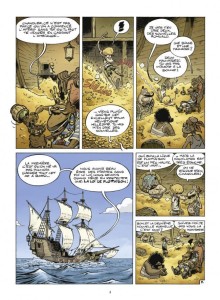 Après Fitzcarraldies, le précédent tome très réussi, Nicolas Pothier récidive. Il livre un récit complètement fou et décalé. Sur fond de littérature, le scénariste de Junk (Treize Etrange) dénonce la folie des bibliothécaires et des amendes pour livre non-rendu, les sites de ventes en ligne ou encore les fermetures des librairies de plus en plus nombreuses. Et ce toujours de manière humoristique. Les personnages sont toujours aussi amusants, les situations absurdes des plus cocasses et les dialogues savoureux. A cela, on ajoute des jeux de mots à foison souvent potaches et dignes de Goscinny et on obtient un livre très drôle. D’ailleurs, Pothier peut même trouver un bon mot et ensuite décrire une scène pour la mettre en valeur (comme pour : faire à Shfal ou Petit Shfal). On ne se refait pas et ce pour le plus grand bonheur des lecteurs. L’équipage de pirates est bien mis en image par Johan Pilet grâce à un trait humoristique très efficace. C’est fou et c’est ça qui est bon !