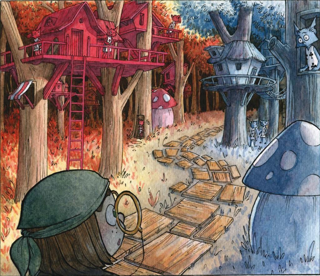 Le lendemain, en pleine nuit, les Tomate grimpent dans leur voiture en direction de la maison de campagne pour leurs vacances. A peine arrivée, Jeanne prend possession de la cabane construite par son père dans sa jeunesse. En haut de l’arbre, elle débute l’écriture de son roman : une histoire de chats-pirates aux pouvoirs magiques…