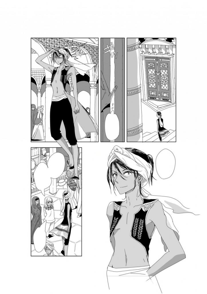 Le récit de Raika Mizushima ressemble à un seinen tant la tournure aventurière du manga prend le pas sur cette histoire plutôt romantique. Le début du premier volume nous plonge au cœur d’une fable proche de celle des Mille et une nuits, dans un palais à la chaleur étouffante entre une déesse capable de trouver les sources d’eau sous le sable et un jeune adolescent. Le destin mélancolique de Fatima n’étant pourtant pas très enviable, vivant seule presque abandonnée dans ses appartements, n’étant juste là que pour accomplir ses tâches ardues. Le scénario poétique nous charme assez rapidement mêlant le fantastique mâtiné à la sauce orientale, mais aussi l’intrigue avec le kidnapping de la jeune femme. Le trait extrêmement délicat de la mangaka réserve lui aussi un belle surprise : doux, léger et aérien ; il permet d’offrir aux lecteurs de très belles planches dans des décors très réussis.
