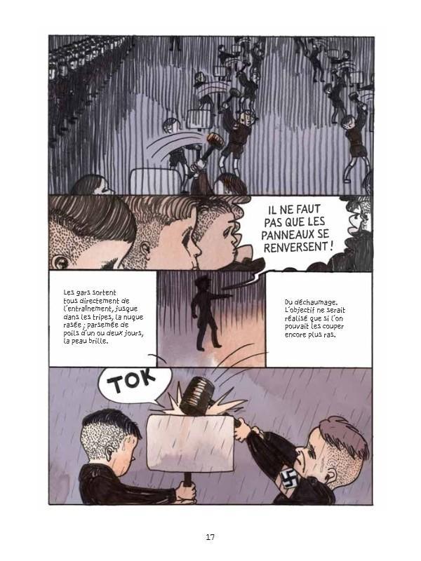 Lauréate du Prix Artémisia et du Prix de la Révélation au Festival d’Angoulême en 2011 pour Trop n’est pas assez (çà et là, 2010), Ulli Lust a décidé d’entreprendre l’adaptation du roman de Marcel Beyer (Calmann-Lévy, 1997) et elle a bien fait, tant son roman graphique est sublime. Beau au niveau des planches, fort dans le récit, son album est exceptionnel. Cette fable nazie est déroutante mais aussi sidérante dans les « tortures » que Karnau a infligé à ses cobayes ; quelques-uns deviendront même sourd-muet. Esprit éclairé, aimé de tous, l’acousticien ne s’embarrasse pourtant que très peu de la morale. La science doit dépasser ces clivages. La relation de Hermann et de Helga, la fille aînée de Goebbels est magnifiquement décrite. Ce personnage de fiction permet aux auteurs de raconter ce moment de grande tension crépusculaire (la fin du 3e Reich dans le bunker de Hilter à Berlin). A lire !